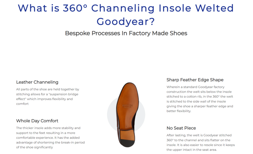 Therefore, to say that it is inferior by a large margin has always been, in my opinion, an overkill statement. But, that doesn’t mean that I feel using the real thing is not superior. The 360° leather channeling by Bridlen is the real thing. Before Bridlen, it was used by very few production-style manufacturers, including JM Weston (of France) and those who made hand welted shoes.