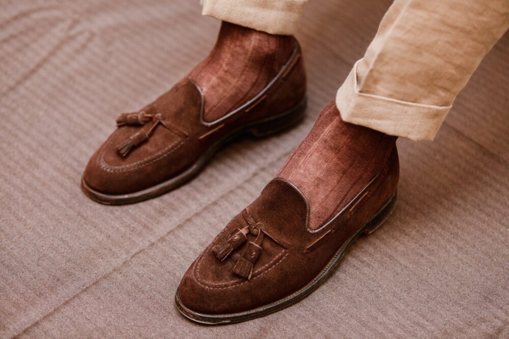 Due to its structure and lightweight composition, it is highly absorbent. But at the same time, will dry faster than other materials. That means it will absorb your sweat quickly while drying nearly simultaneously. Therefore, it is rare that you will ever have that soggy-sock feeling when wearing linen socks. For me, that is the worst feeling there is in a nice pair of leather-lined shoes.