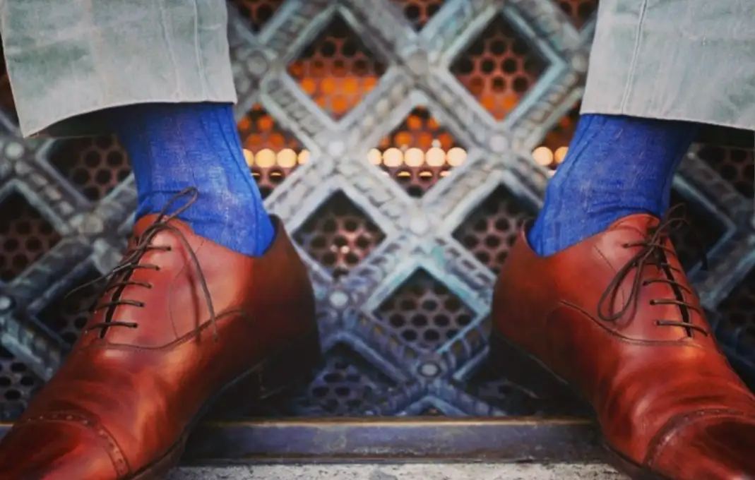 It is easy to show a bright sock on a white background. But what does that do for the consumer? Nothing really. It gives no direction, no inspiration, no help with fear of wearing bright colors. It gives nothing. But what does the picture at the top give? Or any in this post for that matter? Infinite emotions, good or bad. But at least it helps it shows you that you can wear bright blue socks with cedar color shoes and light trousers. It shows the possibility of what a bright colored sock can be paired with. And that is what the people need. But if you take away the shoes, you lose it all. And MCR knows this now and it shows in their marketing.