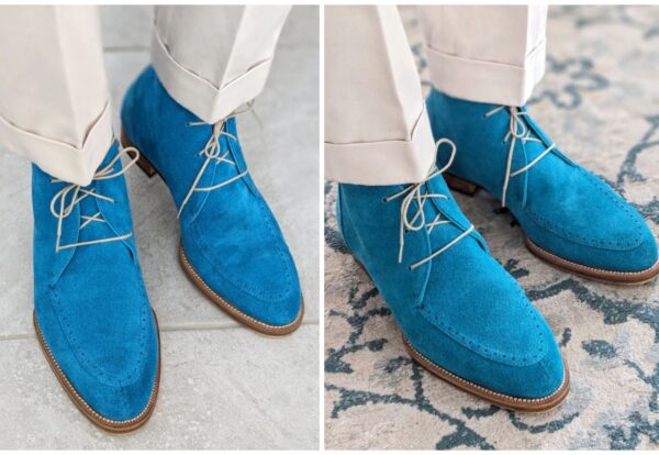 Cru Nonpareil just dropped some awesome new chukkas via their GMTO program in a suede color like you have never seen before--Cyan Suede. Cru is undergoing this