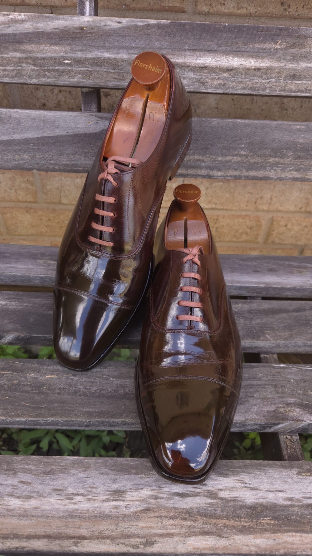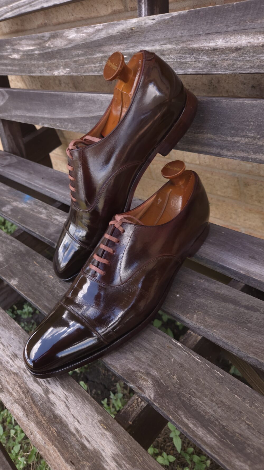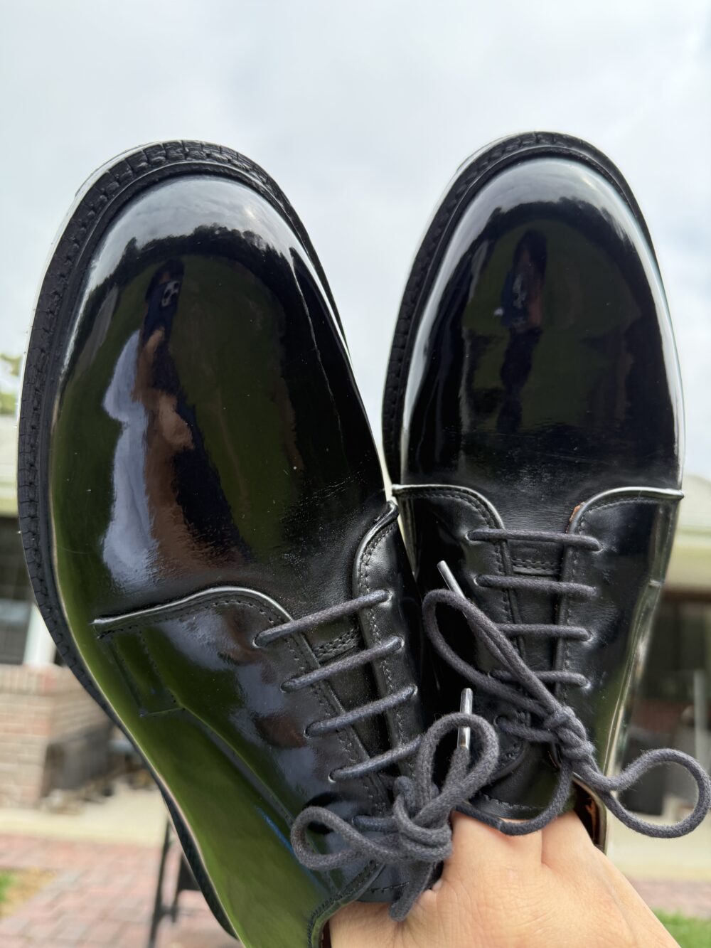 Mario presented a pair of dark brown plain cap toe oxfords that have an extreme shine on the toe and heel, but also over the rest of the shoe. A well-used pair that has been revived to a lovely state. Mario Samaniego has suffered severe PTSD after the Uvalde school shooting, where he worked during the tragic event in 2022.