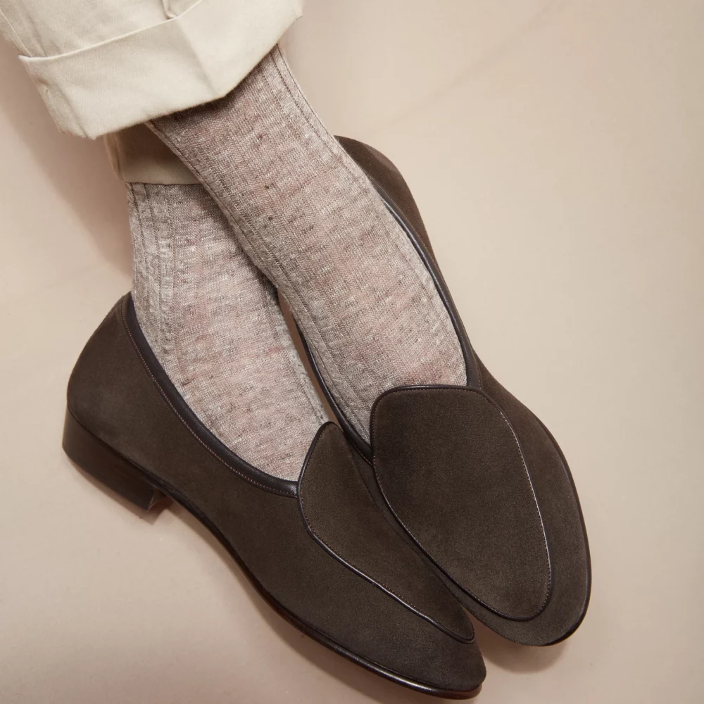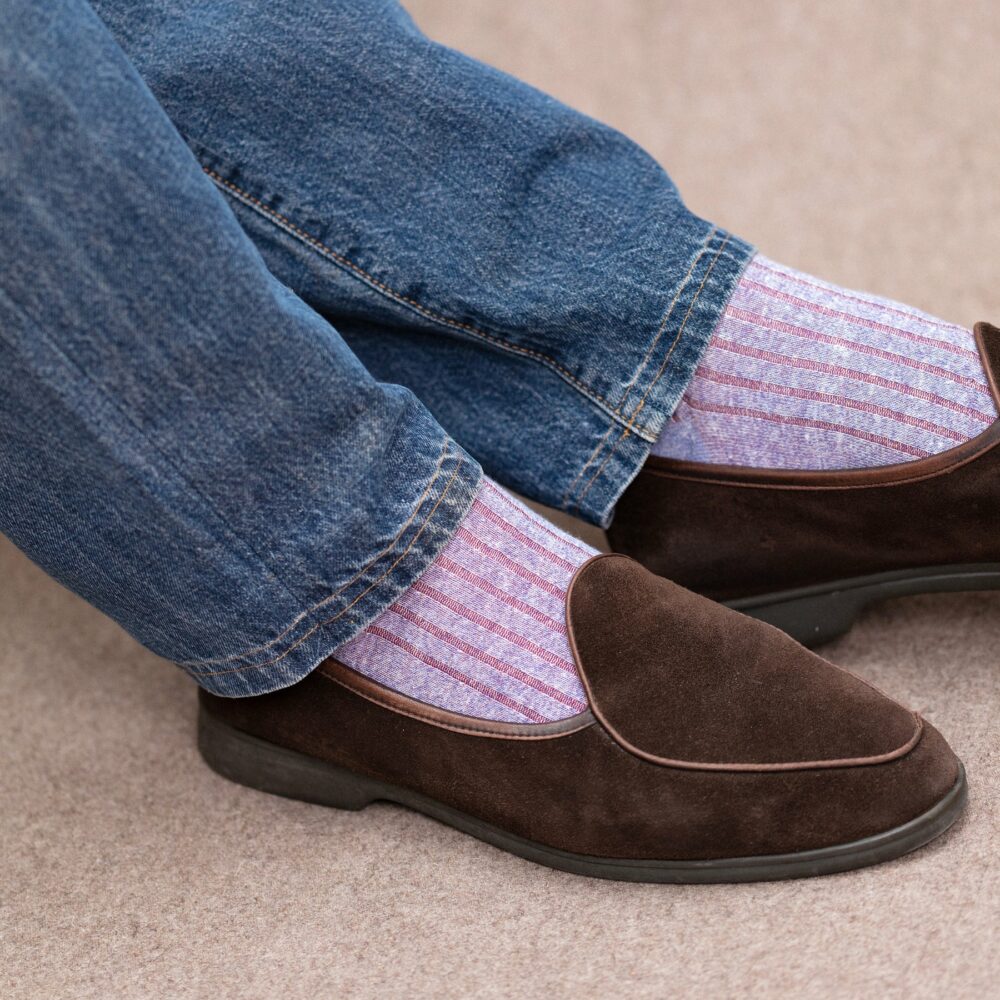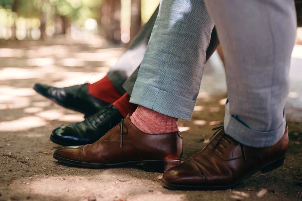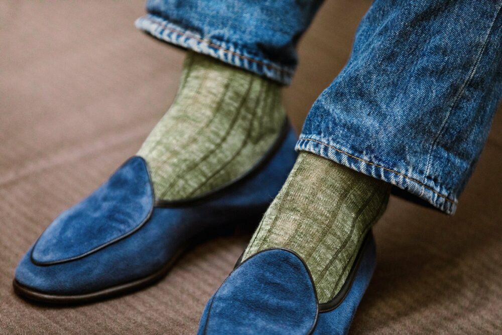 Due to its structure and lightweight composition, it is highly absorbent. But at the same time, will dry faster than other materials. That means it will absorb your sweat quickly while drying nearly simultaneously. Therefore, it is rare that you will ever have that soggy-sock feeling when wearing linen socks. For me, that is the worst feeling there is in a nice pair of leather-lined shoes.