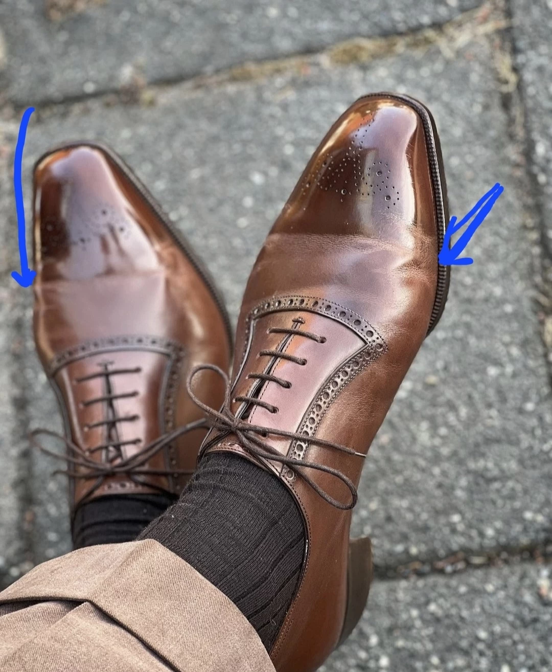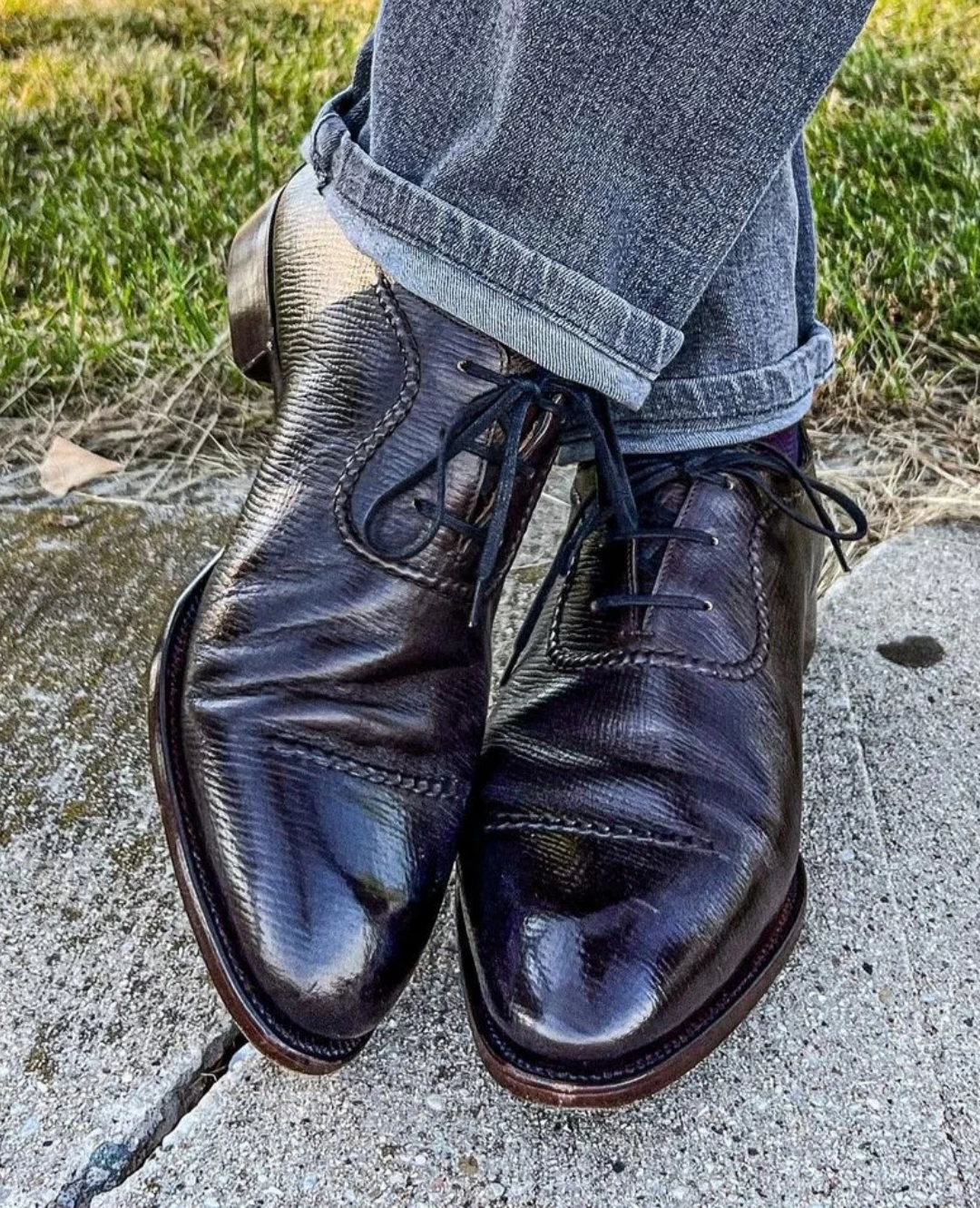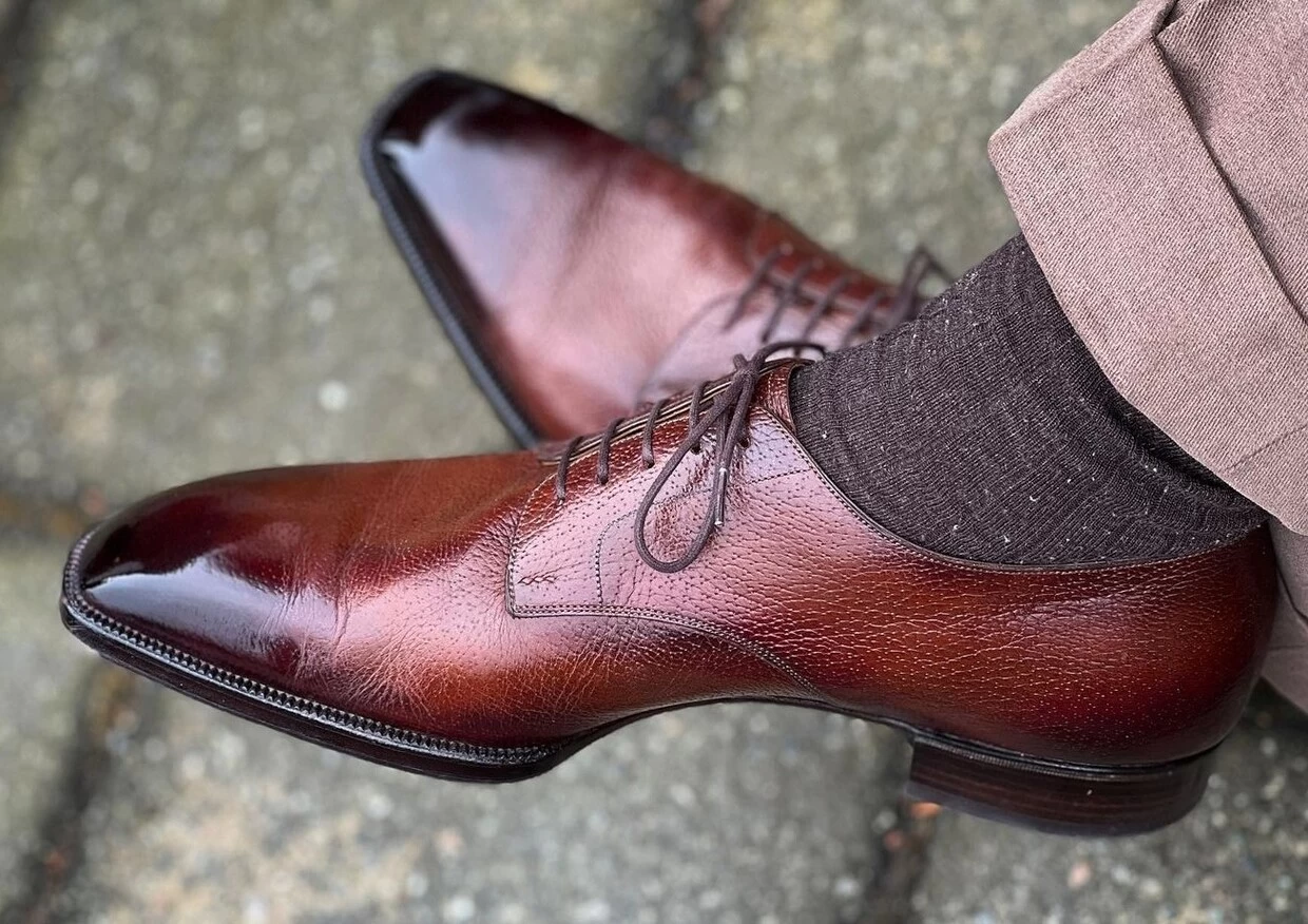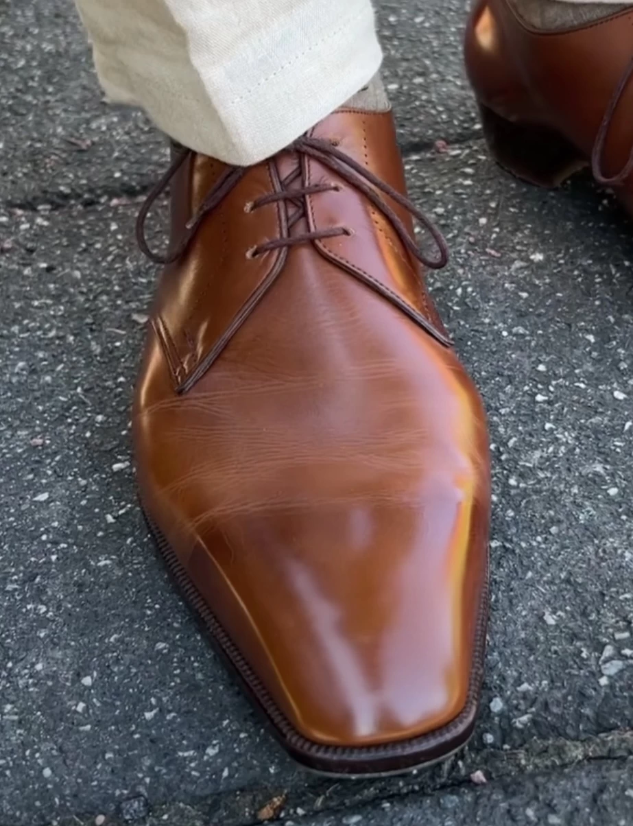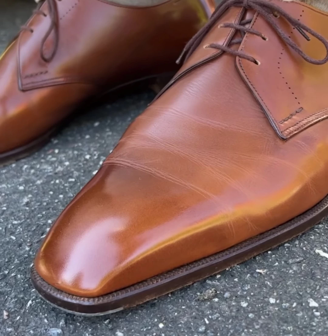 Another gentleman known as @wishoeguy on IG also lives with deep creasing in the majority of his shoes. He has quite a prominent foot and the way that it is shaped seems to be at odds with the elongated lasts that he so enjoys. And this is by no means a knock on him, but to show you that it is about the foot as John owns shoes from nearly every brand the world has produced and mainly the good ones. All of those shoes, mostly high-end, produce the same type of creasing on him. All use good leather. If you look at his TLB adelaides, which so many of us own, you will know immediately that your foot probably does not crease like his in that same shoe. Some of you may have less, equal, or more creasing. But different. Some will have one clean crease, the Holy Grail crease.