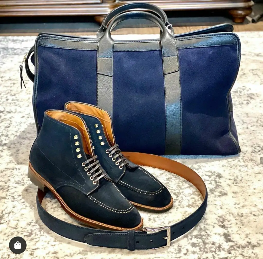 Frank Clegg have an infinite amount of color/material options on this bag, and even MTO program to really go wild with. My personal favorite is the one I have in suede/leather combo. The suede is soft soft and plush yet strong. I really feel that because of the suede it complements everything. I need one in black: My next treat to myself!